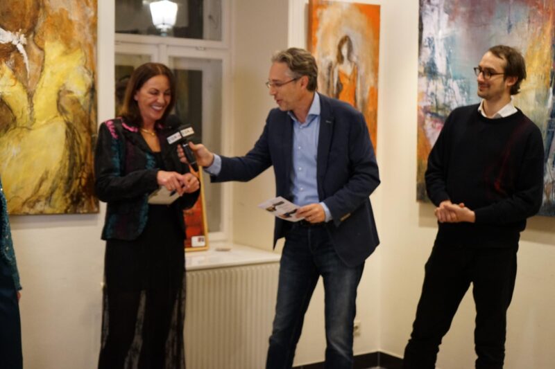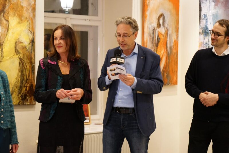 Die Lesung wurde eingerahmt von der Ausstellungseröffnung der bekannten Wiener Neudorfer Künstlerin Michaela Korn, die mit ihrem ausdrucksstarken Farbenspiel das Erdgeschoss des Alten Rathauses in eine Galerie verwandelte. Ihre Werke, die auch das Buch „Nachthimmel“ von Katharina Levashova illustrieren, waren das ganze Wochenende über zu besichtigen und käuflich erwerbbar.