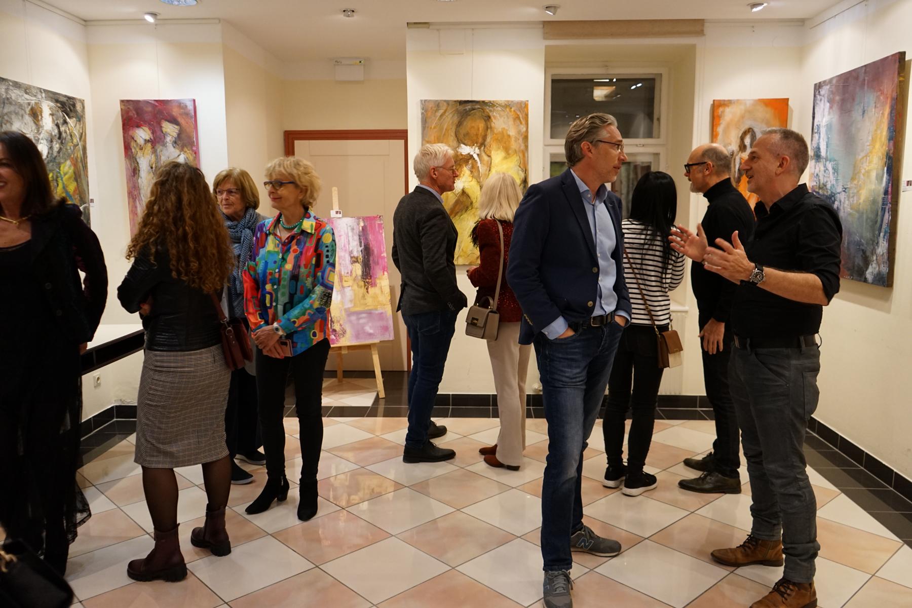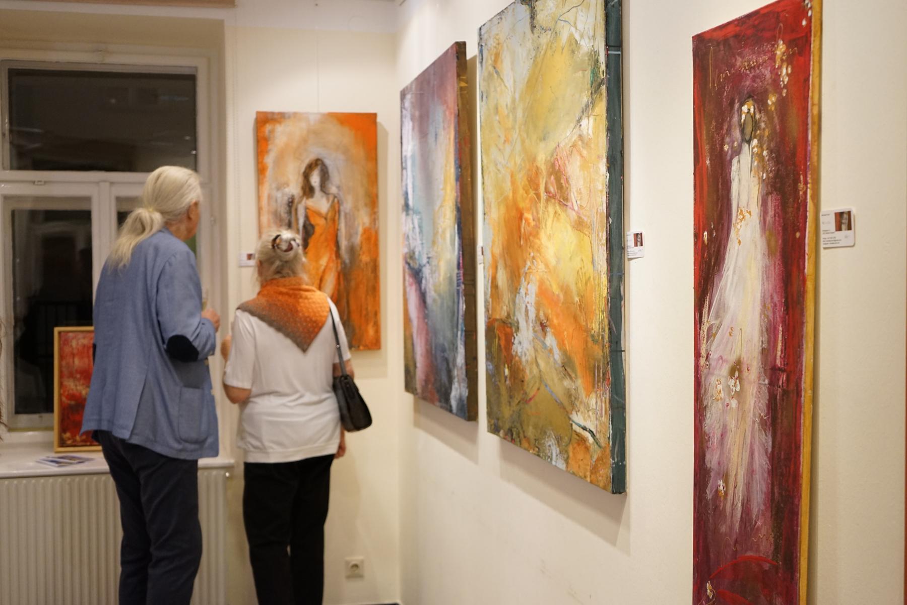 Die Lesung wurde eingerahmt von der Ausstellungseröffnung der bekannten Wiener Neudorfer Künstlerin Michaela Korn, die mit ihrem ausdrucksstarken Farbenspiel das Erdgeschoss des Alten Rathauses in eine Galerie verwandelte. Ihre Werke, die auch das Buch „Nachthimmel“ von Katharina Levashova illustrieren, waren das ganze Wochenende über zu besichtigen und käuflich erwerbbar.