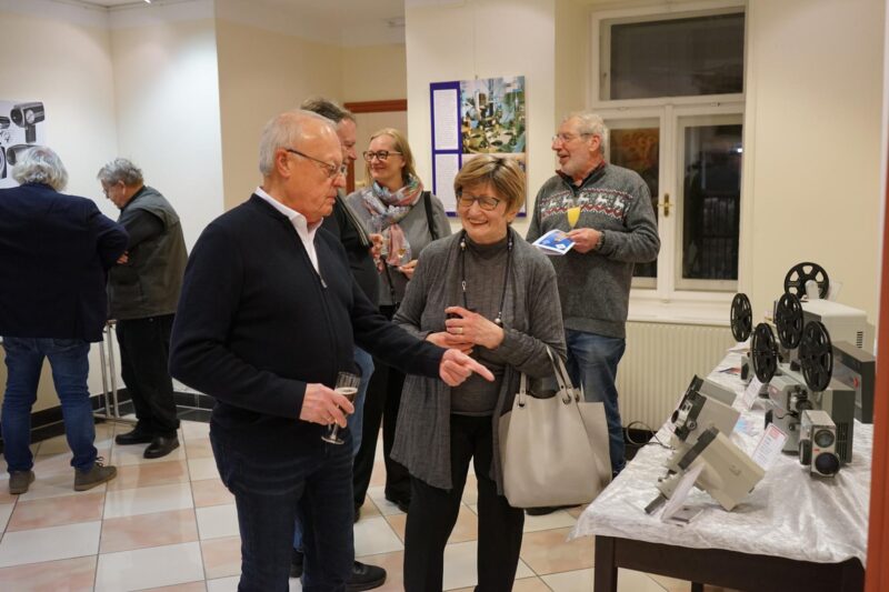 Bürgermeister Herbert Janschka und Uschi & Gus Seemann vom eumigMuseum eröffneten den Abend und begrüßten zahlreiche Gäste, darunter die WIR‑Ausstellerinnen Sigrid Jonak, Anna Coucoutas und Michaela Korn, Mitglieder des Fördervereins eumigMuseum sowie Roland Krammer vom Tauchclub. Auch Lisbeth Zwerger, Tochter des ehemaligen eumig‑Chefgrafikers Reinhold Zwerger, war anwesend.