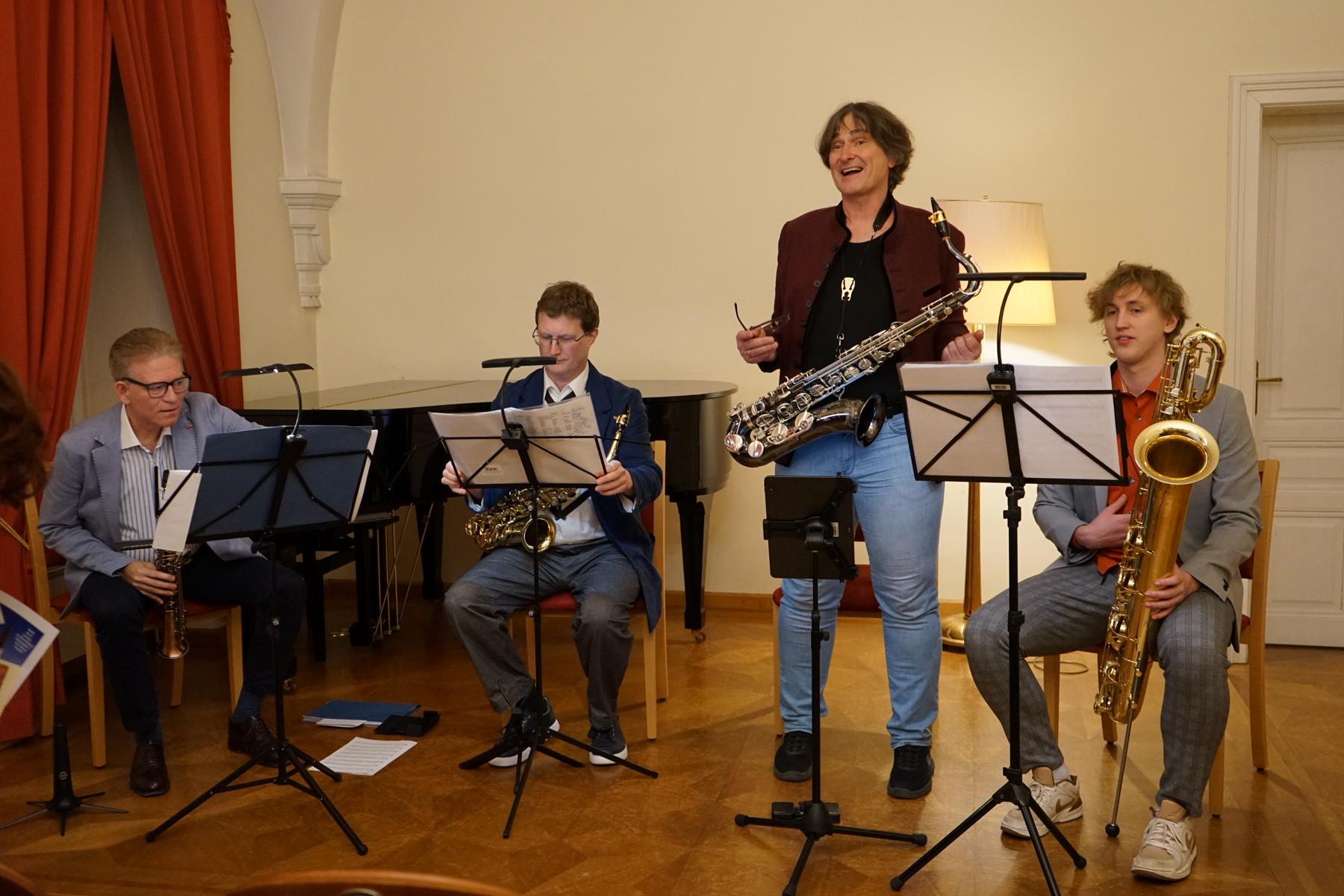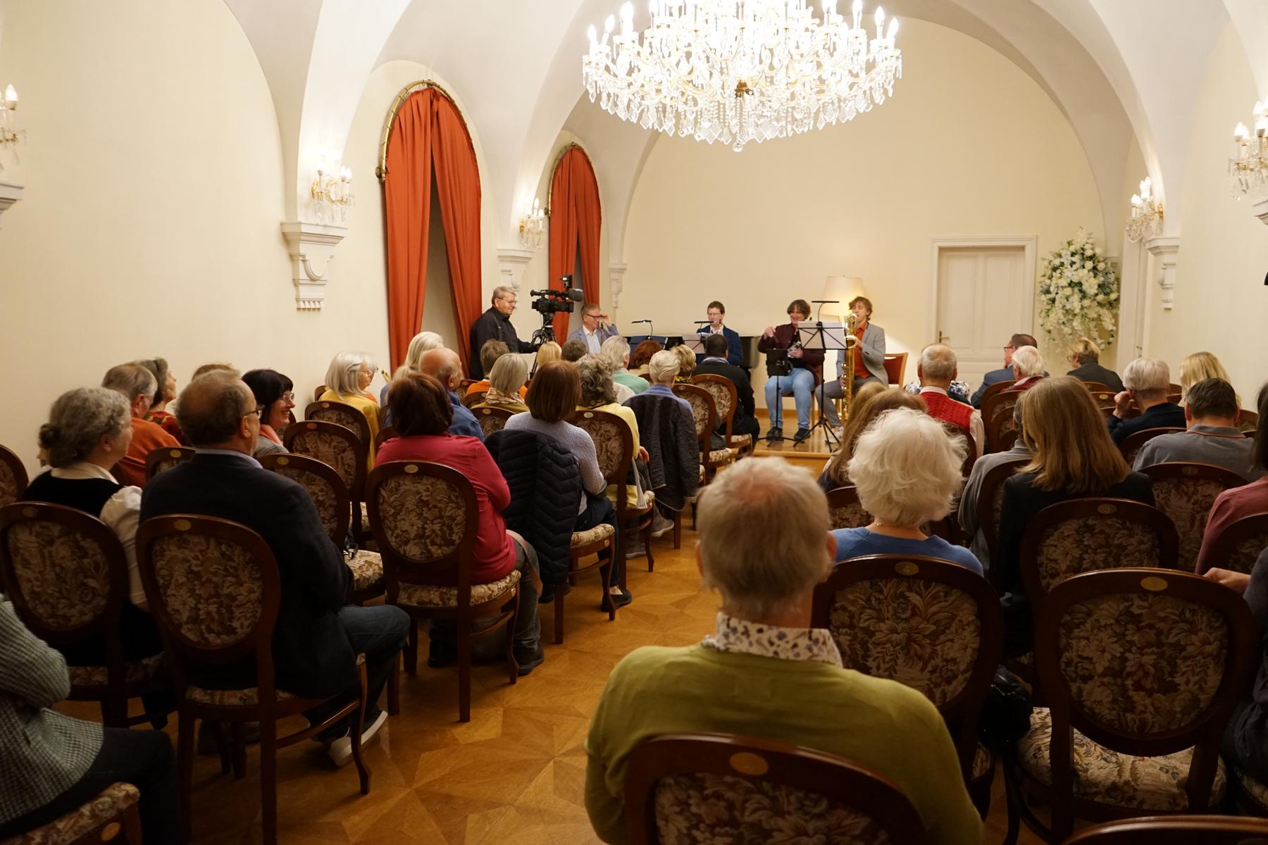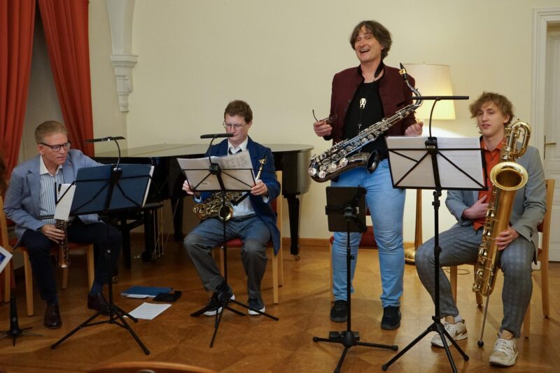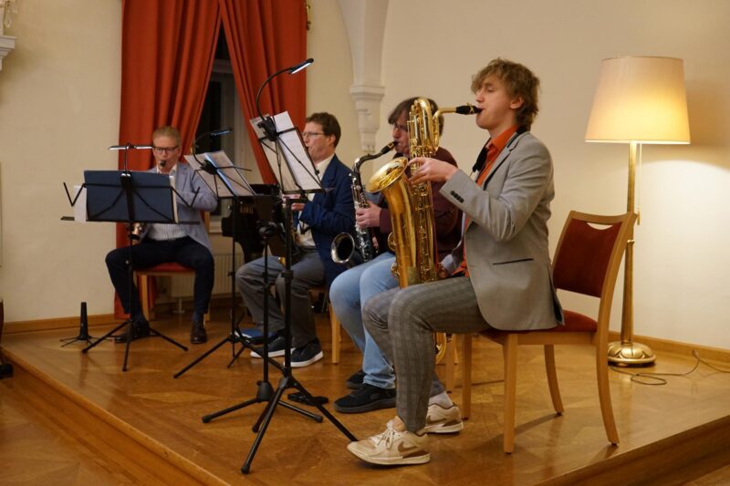 Im Anschluss an die Eröffnung fand im Festsaal im ersten Stock ein Konzert des Ensembles Even4Sax statt. Die Musikerinnen und Musiker präsentierten klassische Stücke auf Saxophonen und boten damit einen abwechslungsreichen und gut besuchten Ausklang des Abends. Das Alte Rathaus war gut gefüllt, und sowohl Ausstellung als auch Konzert erfreuten sich großer Resonanz.
