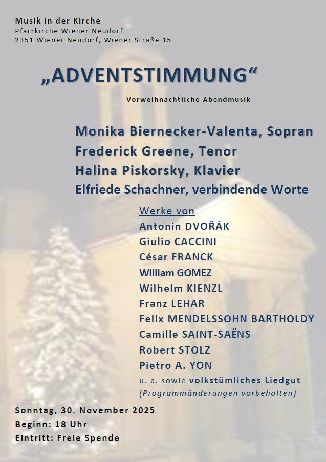 Wiener Straße 15, Sa. 21. November 2025 von 14 bis 18 Uhr und So, 22. November von 8:30 bis 17 Uhr. Adventzauber der Gredlerei – Meisterfloristik Tauschbörse für Christbaumschmuck Kleine Geschenke – Weihnachtliches Produkte aus dem Weltladen – Büchertisch Kaffee und Kuchen Nähworkshop mit der Nähschule Am Samstag ab 14:30 Uhr Musik mit der Musikschule |