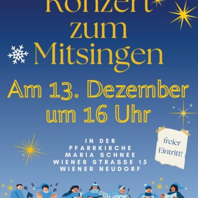 Ort: Franz Fürst Freizeitzentrum , Eumigweg 1-3, 2351 Wiener Neudorf Ticketinfos: Einzelticket Vorverkauf € 38,- | Abendkassa € 43,- Ticketverkauf im Bürgerservice sowie online Im Zeitalter von Facebook, Twitter, Whats […] Ort: Jugendhaus Black Box, Tennisstraße in 2351 Wiener Neudorf Punsch & Rave Veranstalter: ” FIN – Feiern in Neudorf” Ort: Pfarrsaal, 2351 Wiener Neudorf Details: 18:30 – 23:00 Uhr Veranstalter: VTG Richard Bammer |